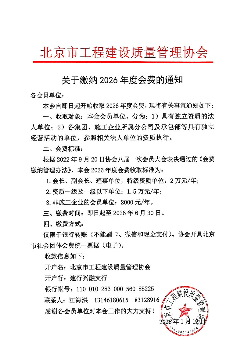 关于缴纳2026年度会费的通知